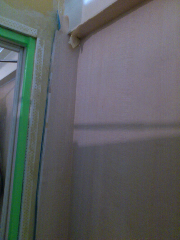 ファイバーテープとコーナーテープで石膏ボードの継ぎ目、角を補修していきます。
