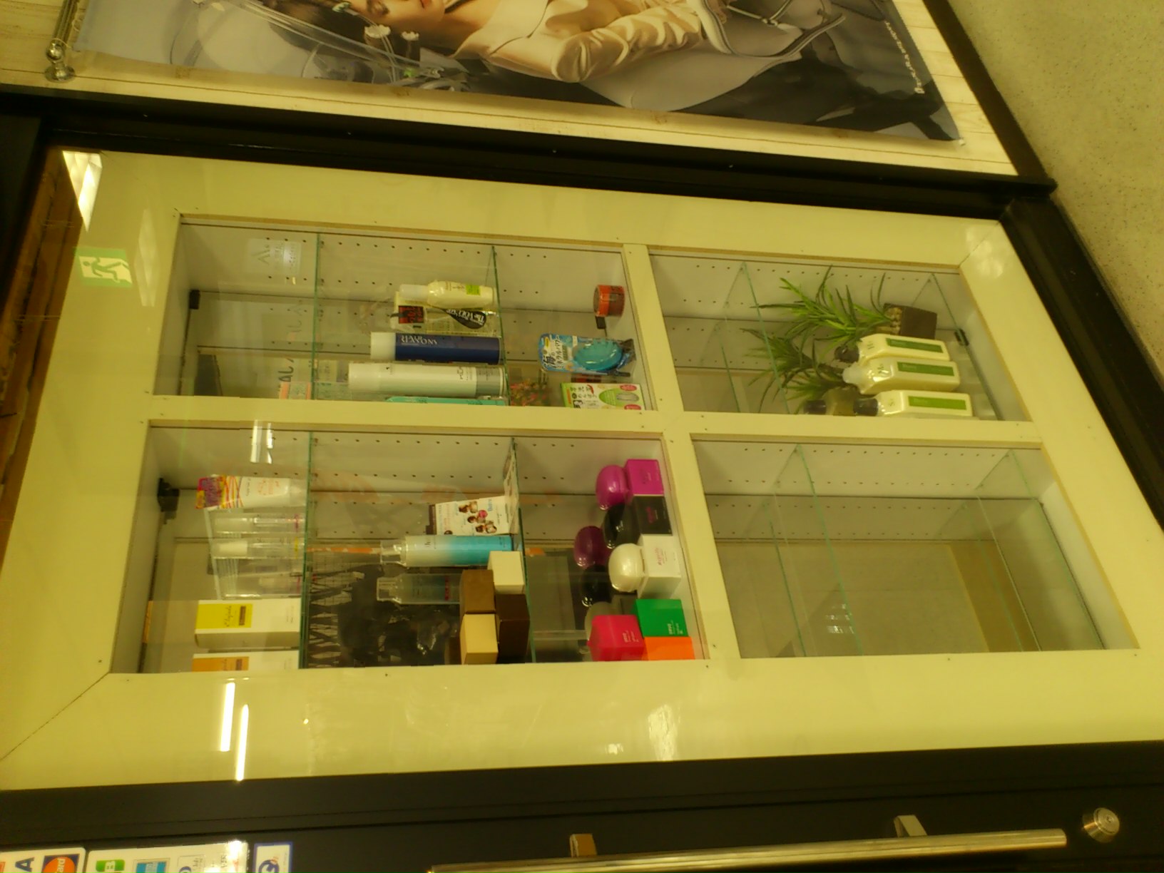 棚の商品のレイアウトはこれからです。値札すら貼ってなくスタイリング剤などをただ飾っている状態になってしまっています。(;´∀`)