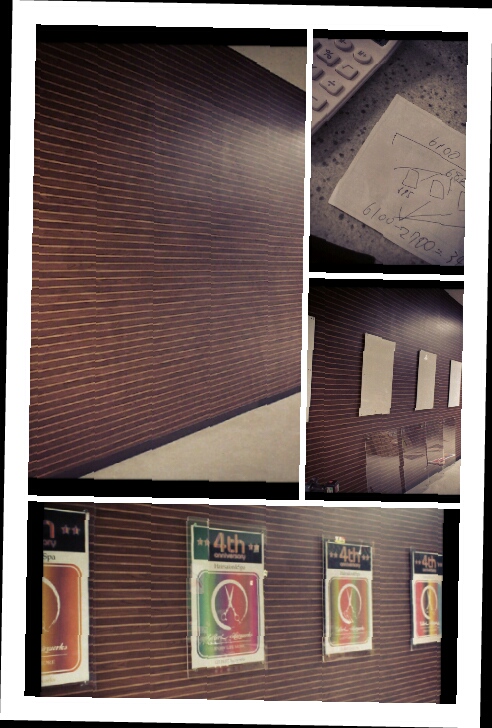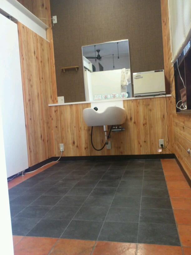 真ん中の色の違う部分が張り替えた場所で、今までは床、壁、それぞれ同じ模様で統一されてました。