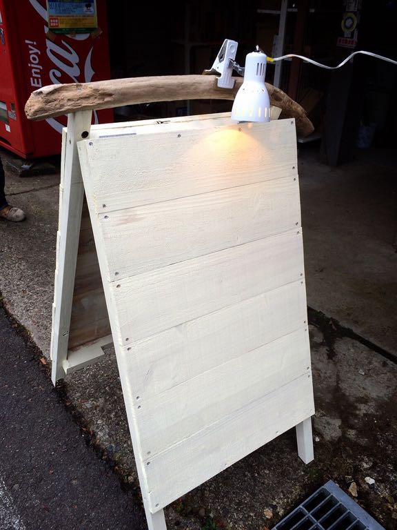 流木を取り入れた手作り立看板